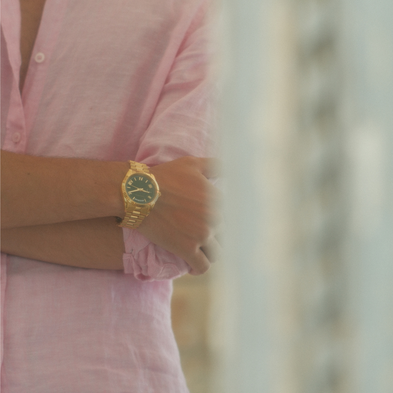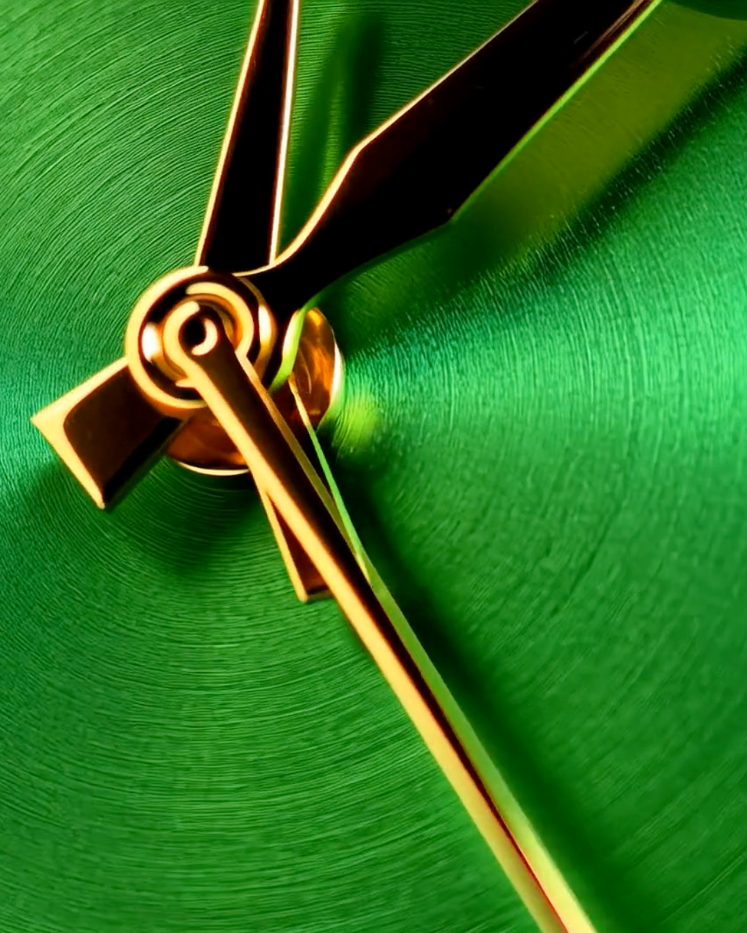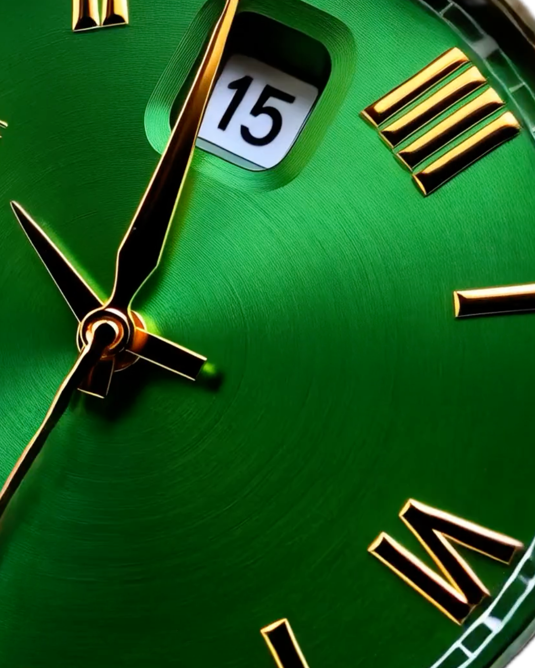 Gold has always signaled ambition, victory, and mastery. In The Takeover, it is not decoration — it is statement. Paired with the emerald dial, it becomes a symbol of growth, control, and energy, designed for those who don’t wait for approval. Every detail, from the mirror-polished case to the luminous finish, is built to reflect decisiveness in form.